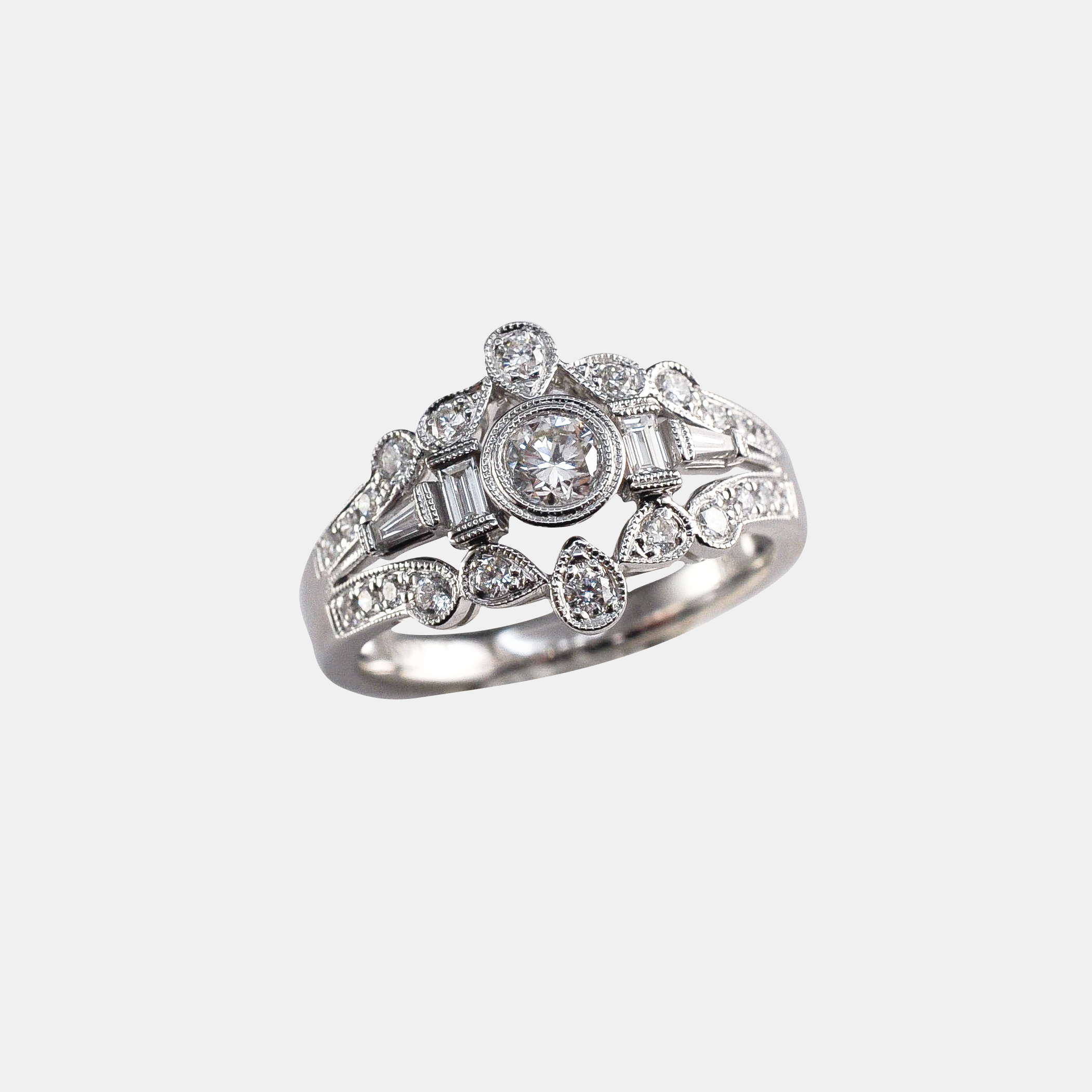 14K White Gold Vintage Inspired Diamond Ring