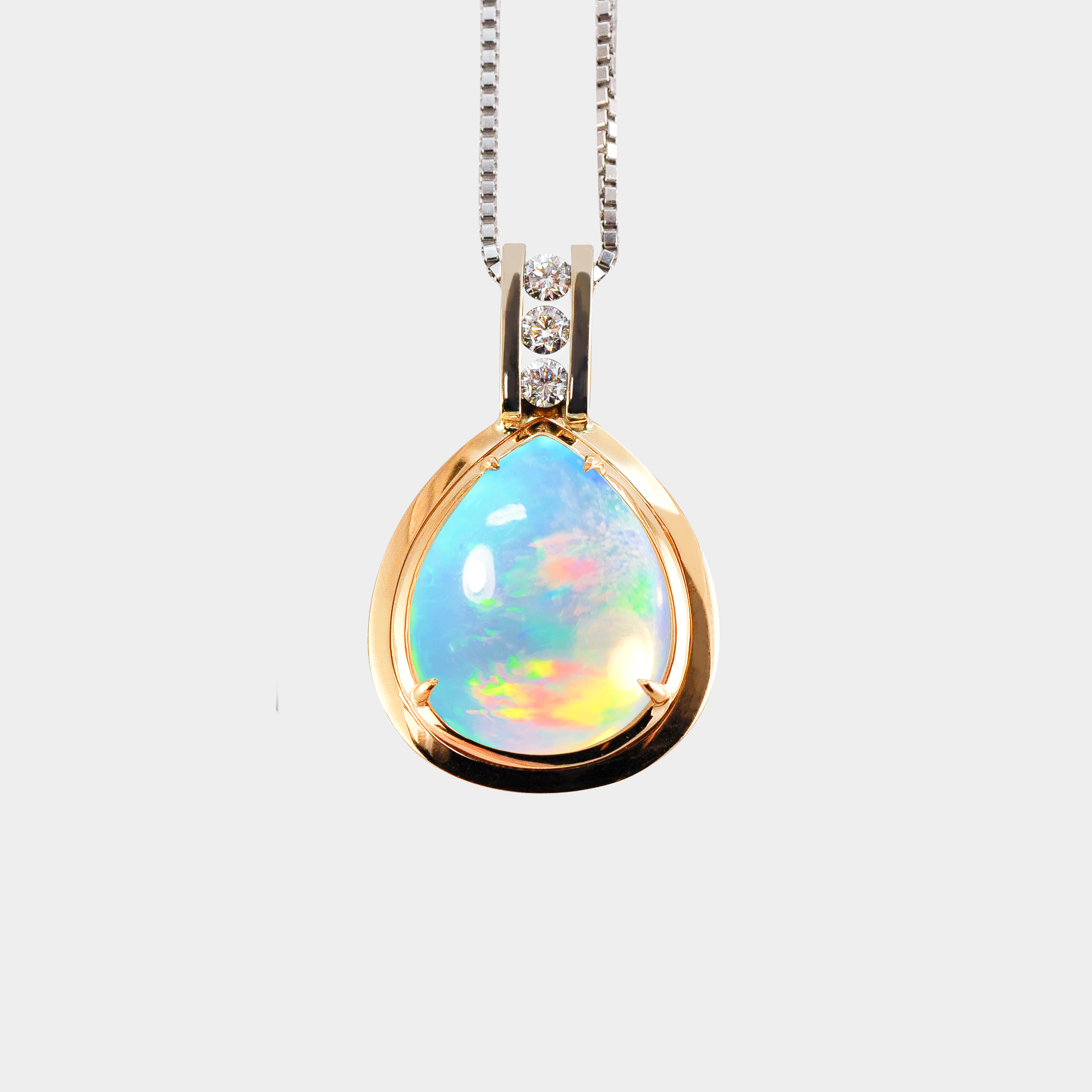 18K Yellow Gold and 14K White Gold Large Ethiopian Jelly Opal Pendant with 3 Diamonds