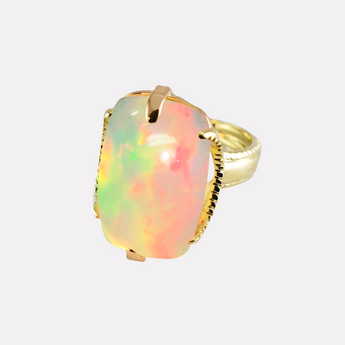 14K Yellow Gold Large Ethiopian Jelly Opal on a Vintage Inspired Shank
