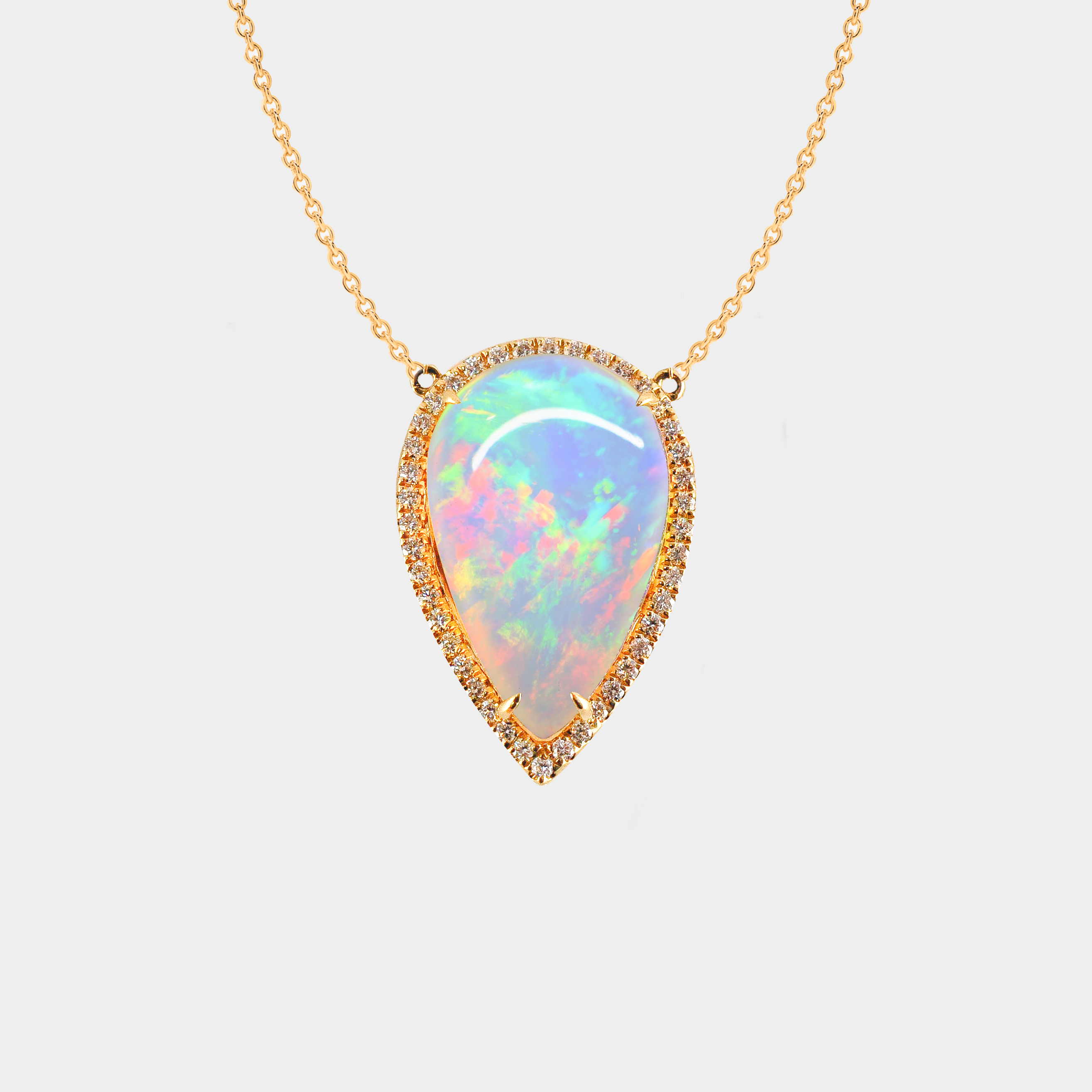 14K Yellow Gold Large Ethiopian Jelly Opal with Diamond Halo