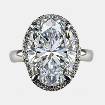 14K White Gold Large Oval Center Cultured Diamond with Halo