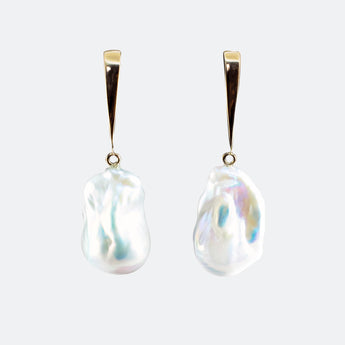 14K Yellow Gold Large Baroque Pearl on European Hoop Earrings