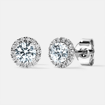 14K White Gold Cultured Diamond Studs with Halos