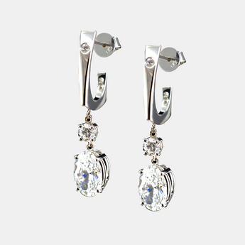 14K White Gold Cultured Diamond Earrings with Oval and Round Diamonds