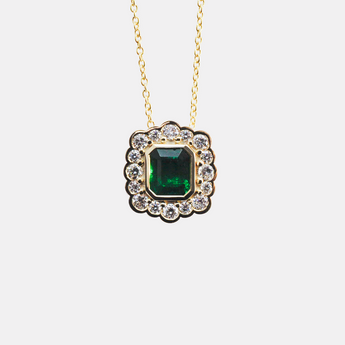14K Yellow Gold Emerald Pendant with Diamond Halo