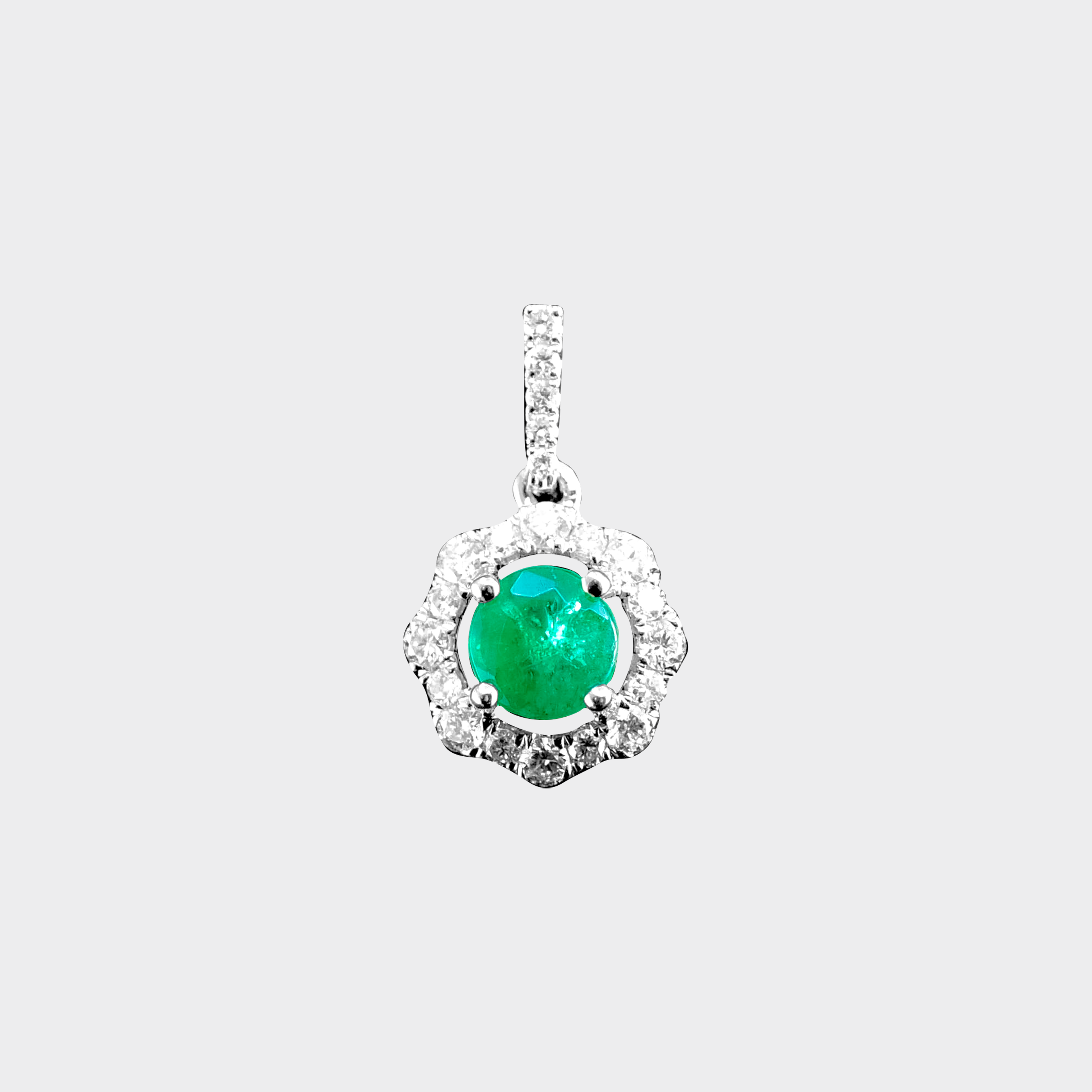 14K White Gold Sapphire/Emerald/Ruby Pendant with Mixed Diamond Halo