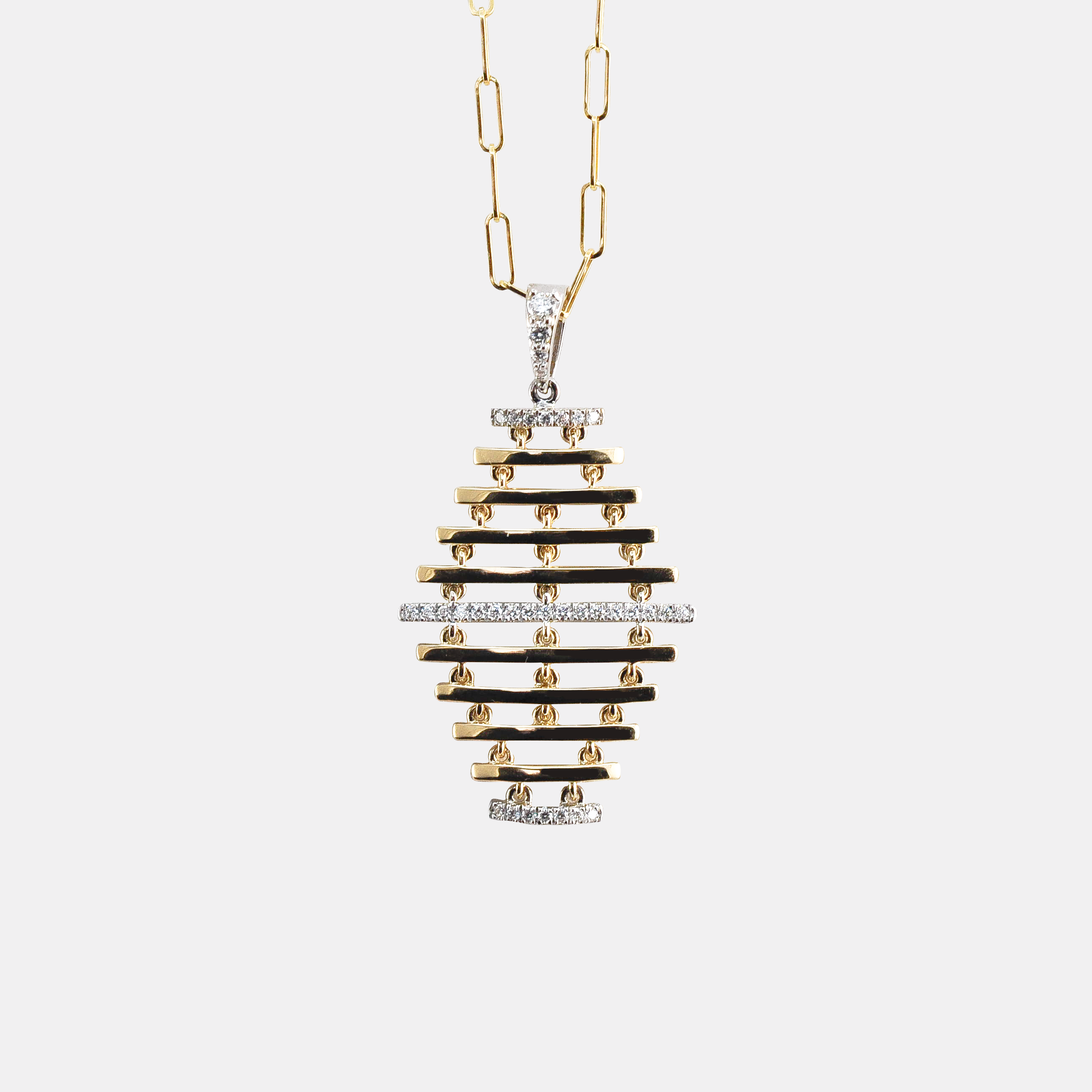 14K Yellow and White Gold Beehive Pendant with Diamonds